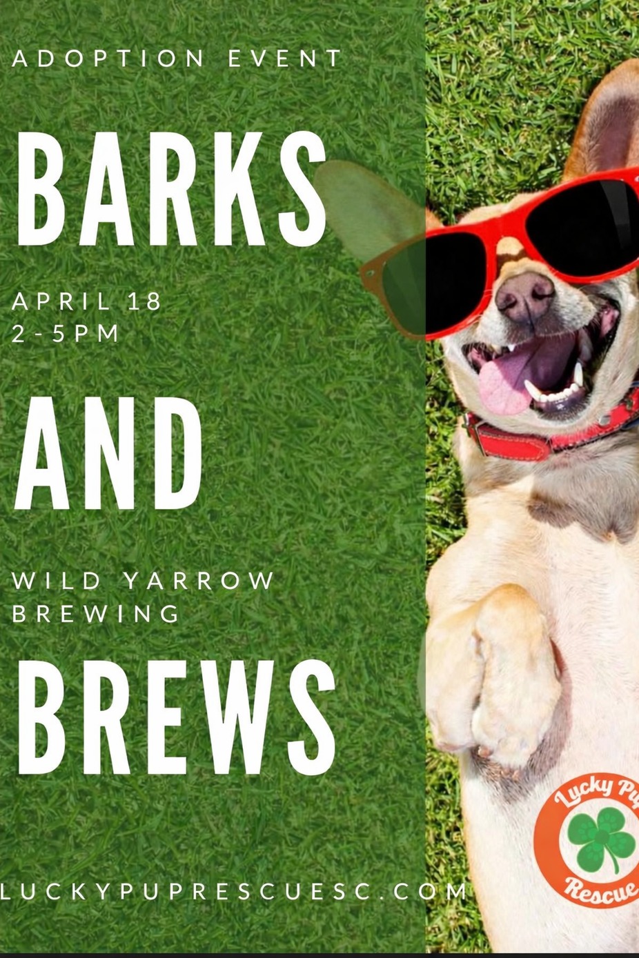 Meet us at Wild Yarrow for our monthly adoption event and fundraiser! 2-5pm you can grab cold brews and love on all Our amazing dogs! Want to adopt? Apply online at www.luckypuprescueSC.com